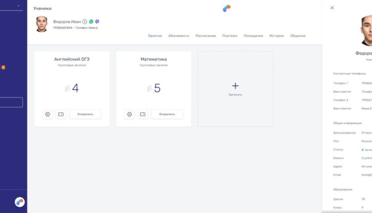 Профиль ученика в Параплан CRM.