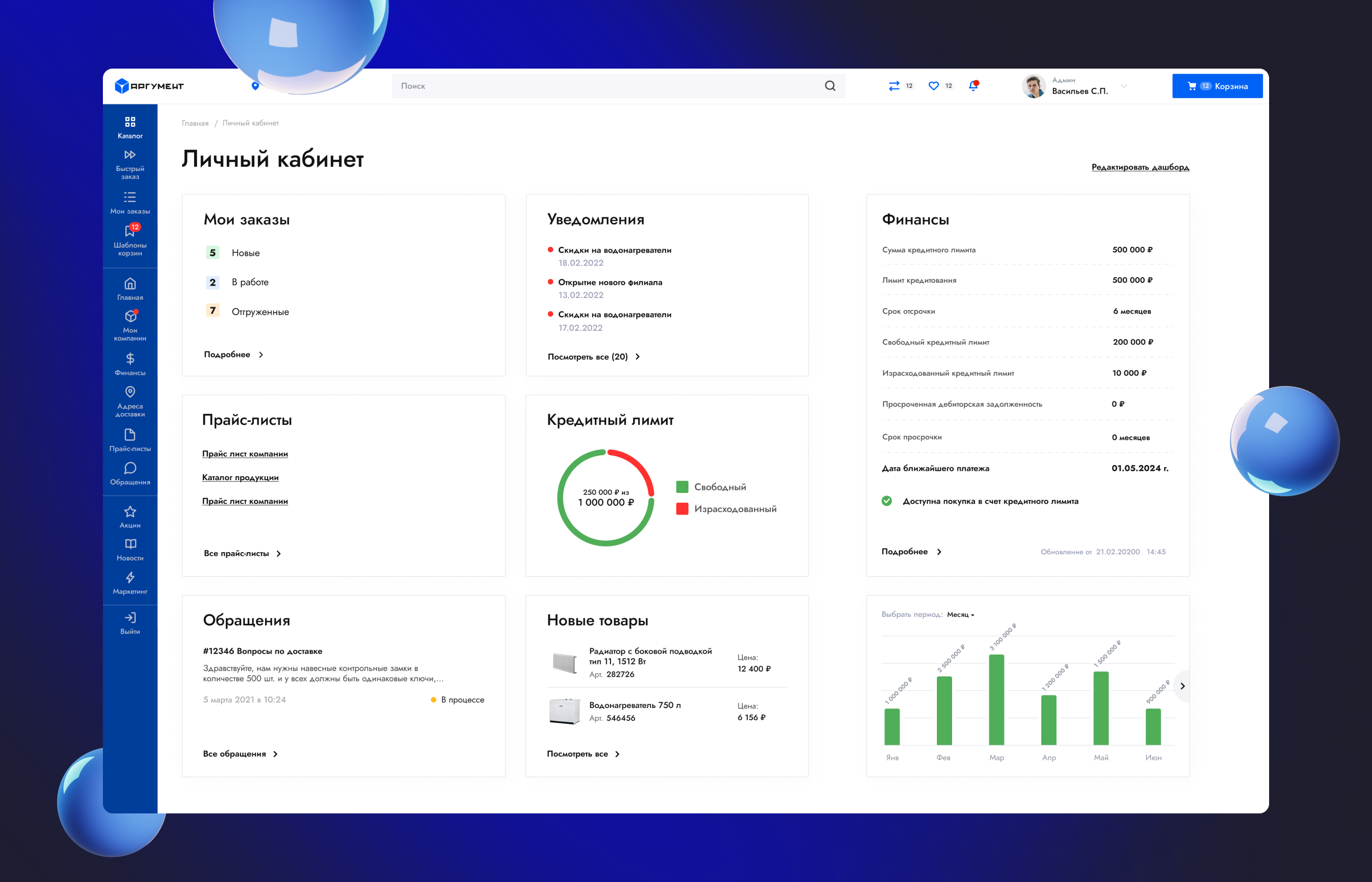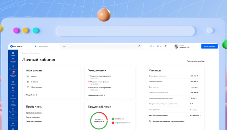 Оптовый личный кабинет должен обеспечивать удобство взаимодействия и автоматизацию закупочных процессов. Рассмотрим возможности личного кабинета на примере клиентского портала «ТехноНИКОЛЬ»: