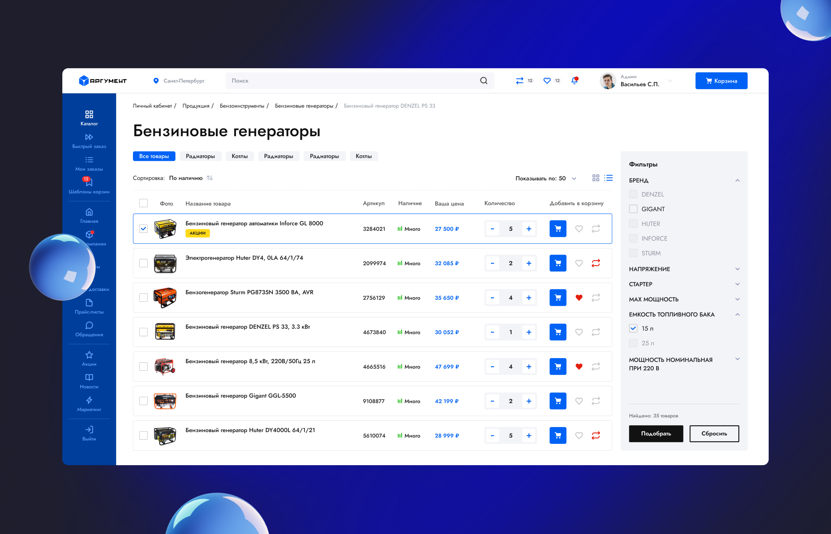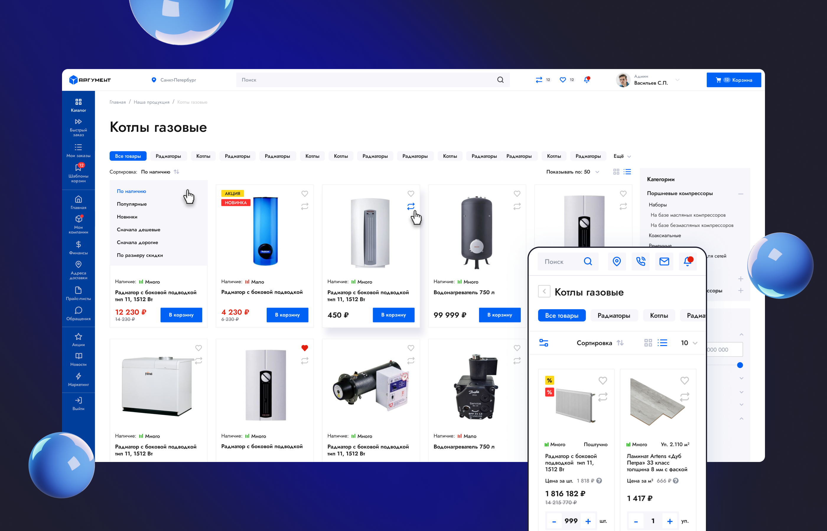 В поиске предусмотрены фильтры подбора товаров по разным параметрам. Это помогает оптовым покупателям быстро находить нужные товары. Избыточные элементы дизайна убираются, чтобы обеспечить высокую производительность и эффективность работы оптового портала для B2B-торговли.
