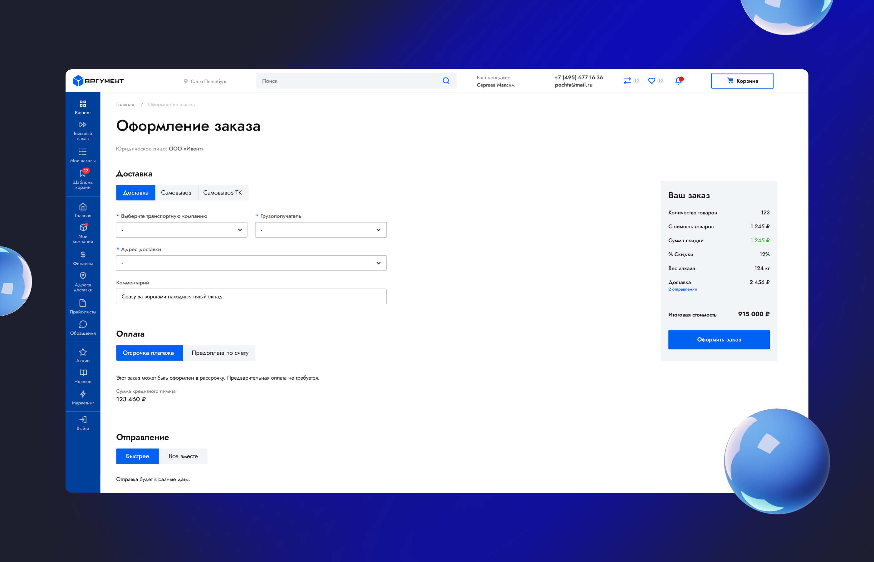 В интернет-магазине оптовых продаж для удобного оформления заказа обычно предусмотрены следующие функции: