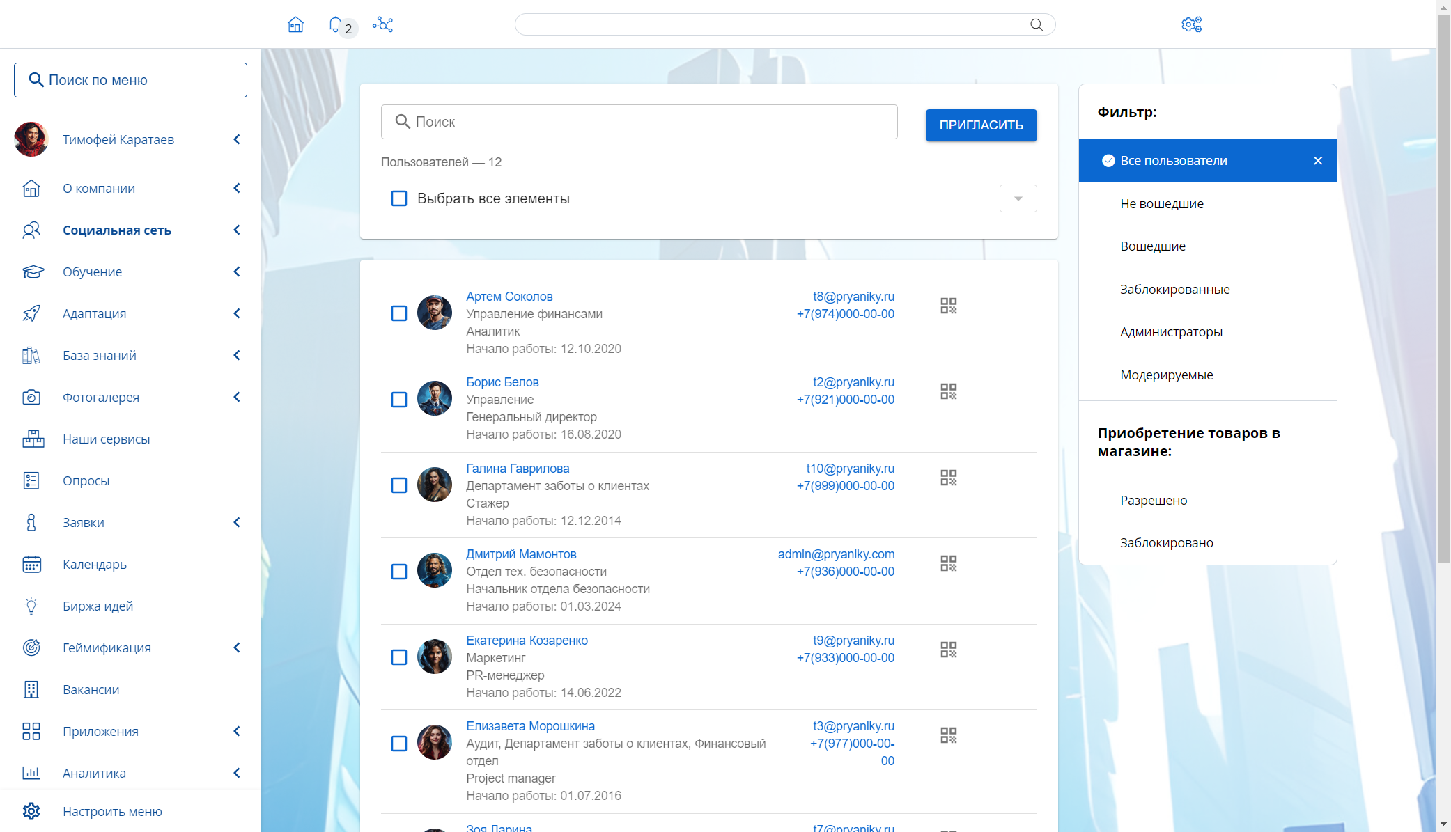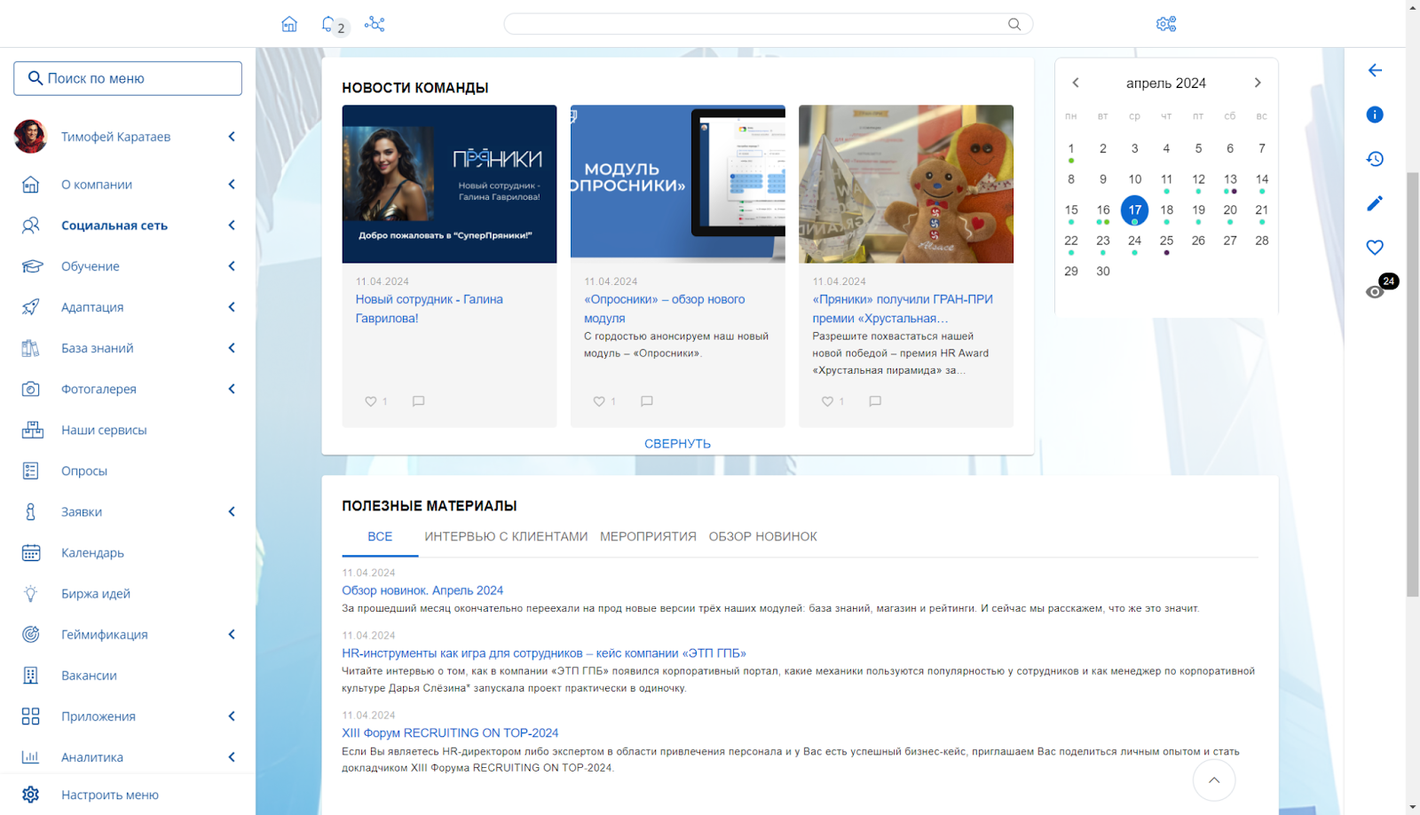 Используя корпоративную социальную сеть как фундамент, «Пряники» создали вокруг нее различные бизнес-сервисы. Они помогают организовать среду непрерывного развития сотрудников, повышают их производительность и решают другие важные HR-задачи.