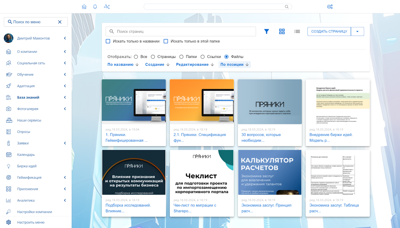 Структура папок. Все материалы систематизируются в привычном формате, но у «Пряников» есть небольшой секрет. В нашей базе знаний один объект может одновременно находиться в нескольких папках, при этом не нужно создавать ярлыки или копии.