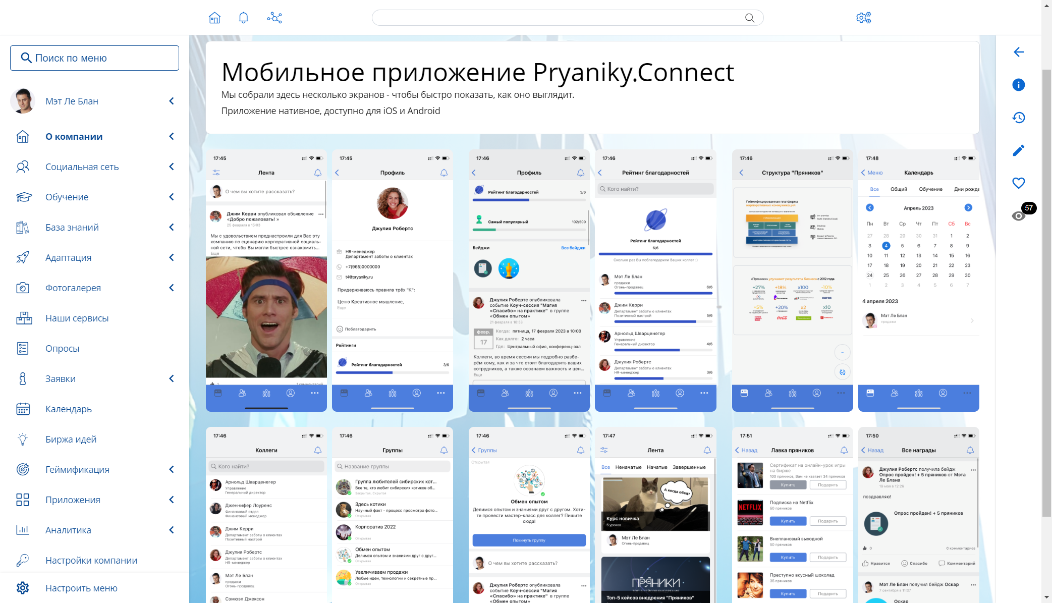 «Пряники» – геймифицированная платформа корпоративных коммуникаций (есть веб-версия и мобильное приложение). Это готовое решение с гибким конструктором, благодаря которому можно подобрать оптимальный сценарий под конкретные задачи компании.