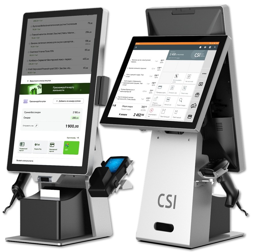 Компания CSI подхватила эту идею и разработала свою линейку гибридных касс. Передовые решения для касс самообслуживания и сенсорных касс у вендора уже были, оставалось только объединить их в одном устройстве, удобном для обеих сторон процесса, что оказалось непростой задачей с точки зрения эргономики, но об этом позже.