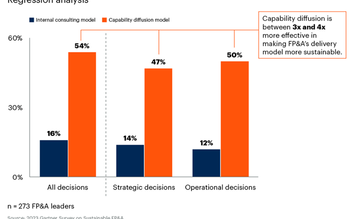Быстрое развитие цифровых технологий впервые дает возможность масштабировать функцию финансового планирования и анализа, сделав шаг от специализированной финансовой команды к общекорпоративной службе, так что ЛПРы могут частично перейти на самообслуживание, используя поддержку принятия решений финпланирования и анализа, встроенную в цифровые инструменты.