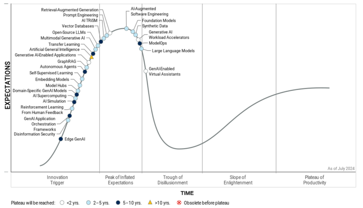 Рис. 1. Кривая цикла зрелости технологий генеративного ИИ (по состоянию на июль 2024 г.)