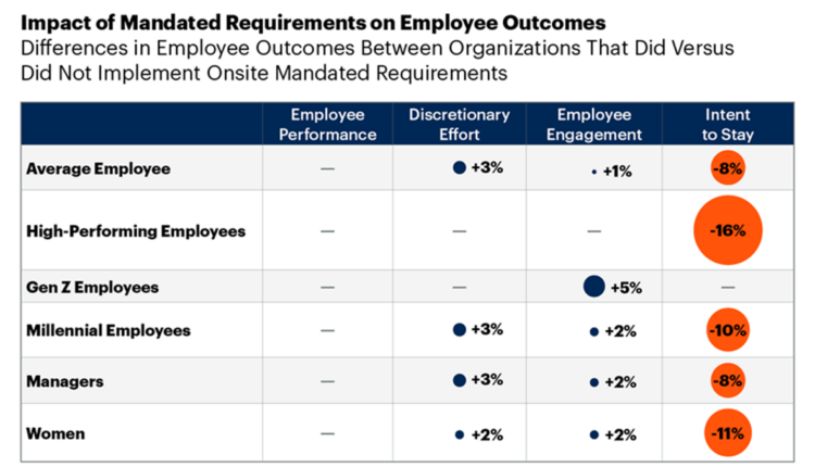 Gartner: лучшие работники, женщины и миллениалы быстрее других покинут компанию в ответ на требование работать в офисе