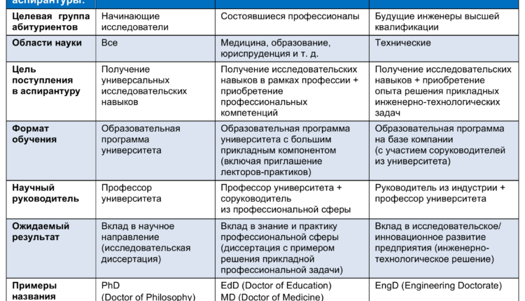Все три описанные модели аспирантуры систематизированы в таблице 1.