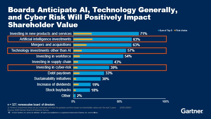 Члены советов директоров полагают, что прицел инвестиций на ИИ, ИТ в целом и снижение киберрисков позитивно скажется на акционерной стоимости
