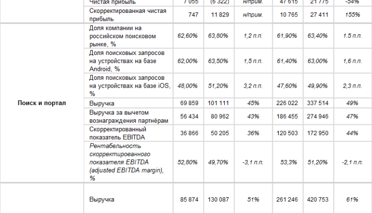 Сегмент Поиска и портала включает Поиск, Геосервисы, Погоду и ряд других сервисов Яндекса в России, Беларуси и Казахстане.