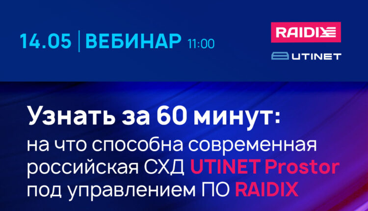 14 мая состоится вебинар «Узнать за 60 минут: на что способна современная российская СХД UTINET Prostor под управлением ПО RAIDIX».