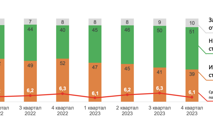 Россиянам, которые испытывают стресс, было предложено оценить его уровень по десятибалльной шкале. Выяснилось, что в четвертом квартале прошлого года этот показатель равнялся 6,1. Аналогичное значение общего уровня стресса отмечалось и в начале 2023 года. В течение 2022 года средние показатели уровня стресса находились в диапазоне