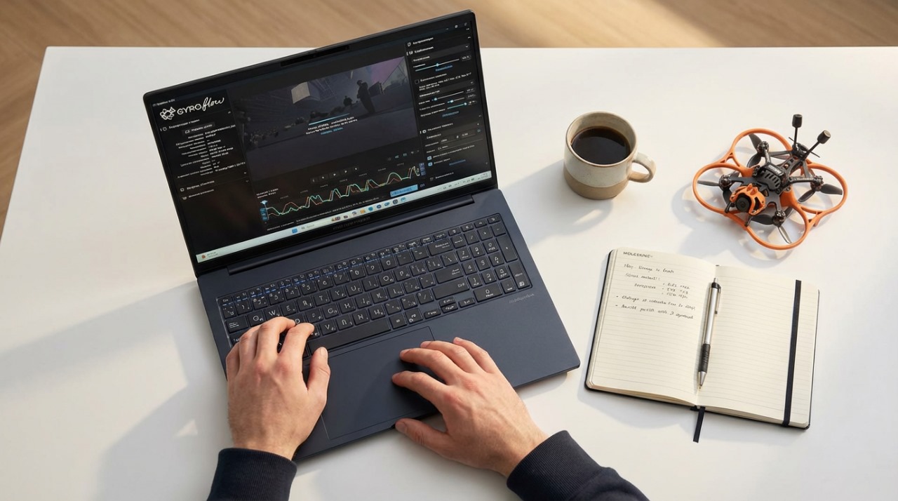 «Для человека, который постоянно работает в полях, в горах, возле воды, на ветру — это прямое попадание в цель. Я без опасений брал его на площадку, клал рядом с дронами, рюкзаками, инструментами, и ноутбук чувствует себя уверенно. 16-дюймовый экран с разрешением 2,5K и частотой обновления 144 Гц — тоже огромный плюс. Часто мои FPV-видео — это поток очень быстрых сцен и мелких деталей. И монитор здесь раскрывается на 100%. С учетом Intel Arc Graphics и быстрой памяти DDR5 ноутбук уверенно тянет обработку 4K-видео, предпросмотр и экспорт роликов. Работать можно буквально на месте съемки — в машине, в полевых условиях, на локации, не дожидаясь возвращения в офис. Особенно я оценил наличие microSD. Для оператора FPV это спасение. Карта из дрона — сразу в ноутбук — просмотр — анализ — и можно лететь дальше. Больше нет необходимости носить с собой картридер, так как вся техника у меня работает с microSD картами. Могу сказать, что ASUS ExpertBook B5 — это ноутбук, который создан для real-production и нового ИИ-поколения. Для меня как для человека, работающего с аэросъемками и FPV-дронами, это полноценная рабочая станция будущего, которую можно взять с собой куда угодно и не переживать за производительность, надежность и автономность», — говорит Ярослав Бартули, пилот FPV-дронов.