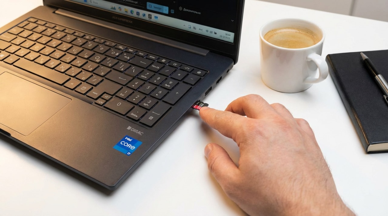 Если же говорить про возможности подключения, то ASUS не стала играть в минимализм — набор разъемов у новинки избавит пользователя от необходимости носить с собой «мешок» переходников. У ExpertBook B5 есть полноценный RJ45 для проводной сети (что уже редкость в современных ноутбуках), HDMI 2.1 для подключения 4K-мониторов и кардридер microSD. Отдельного внимания заслуживают два порта Thunderbolt 4. Они поддерживают быструю зарядку (Power Delivery), вывод изображения и передачу данных на скорости до 40 Гбит/с. А за беспроводную связь отвечает новейший модуль Wi-Fi 7 (в топовых комплектациях).