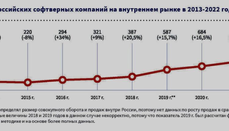 Продажи софтверных компаний на внутреннем рынке выросли значительнее, чем снизился их экспорт: выручка от работы в России поднялась на 37,1% до 1,117 трлн руб.
