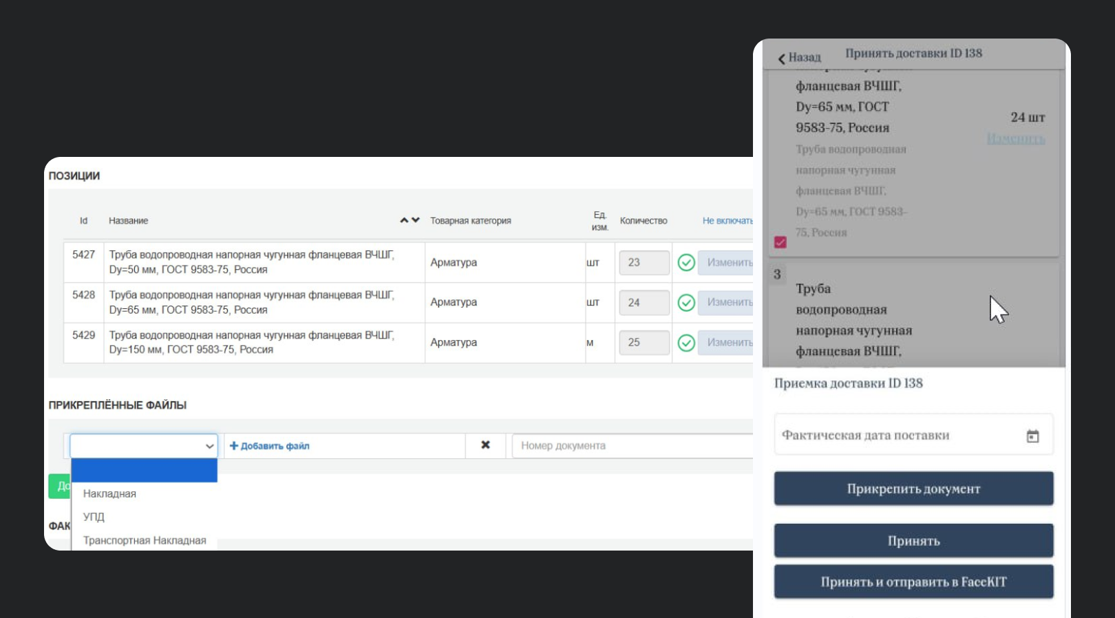 Следующим этапом стало обучение работников приемке материалов на площадке через мобильные устройства: проверке качества, прикреплению фото и подтверждающих документов.